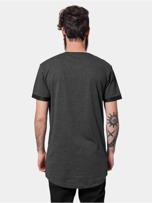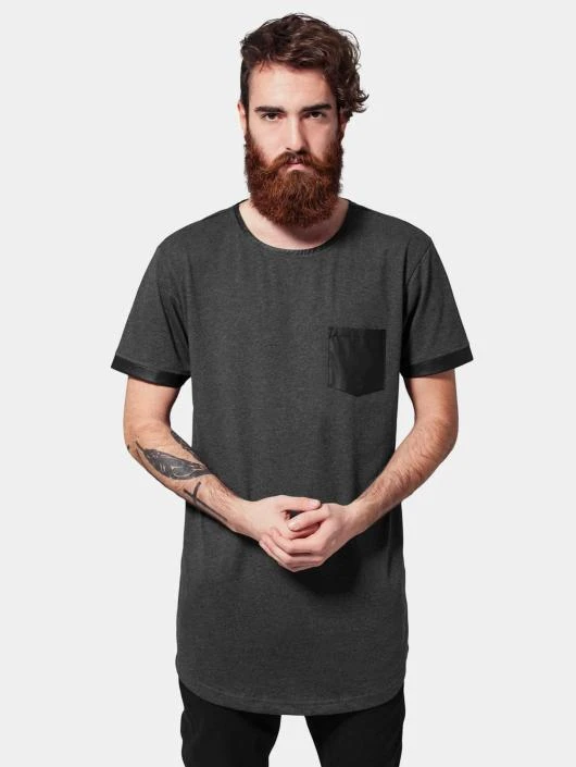 Herren T-Shirt Long shaped Leather Imitation in grau